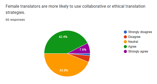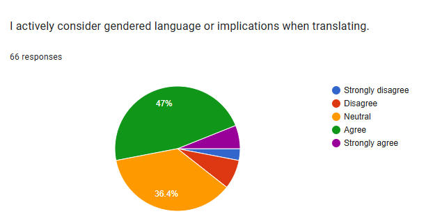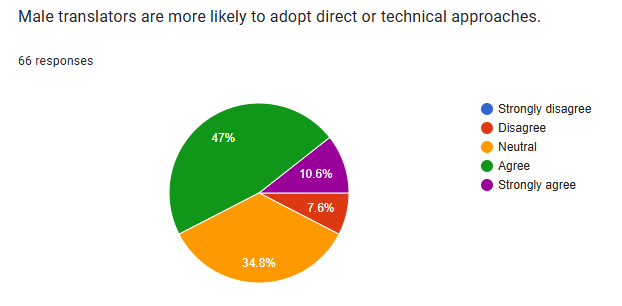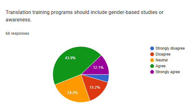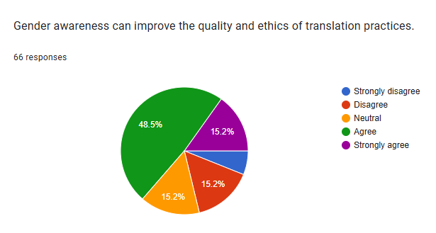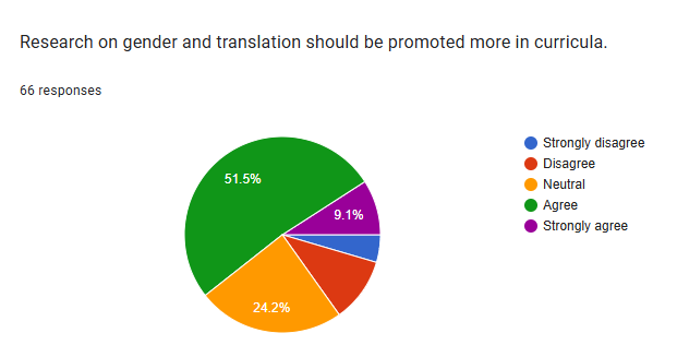 The largest portion of respondents agreed with the statement, indicating a significant desire for more focus on gender and translation in academic curricula.
