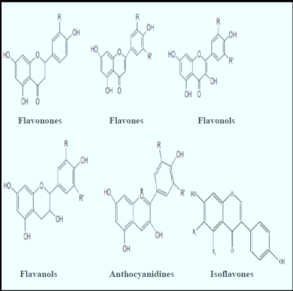 شكل (2)الصيغة التركيبية لبعض أنواع الفلافونيدات (Bahorun et al.,2006)