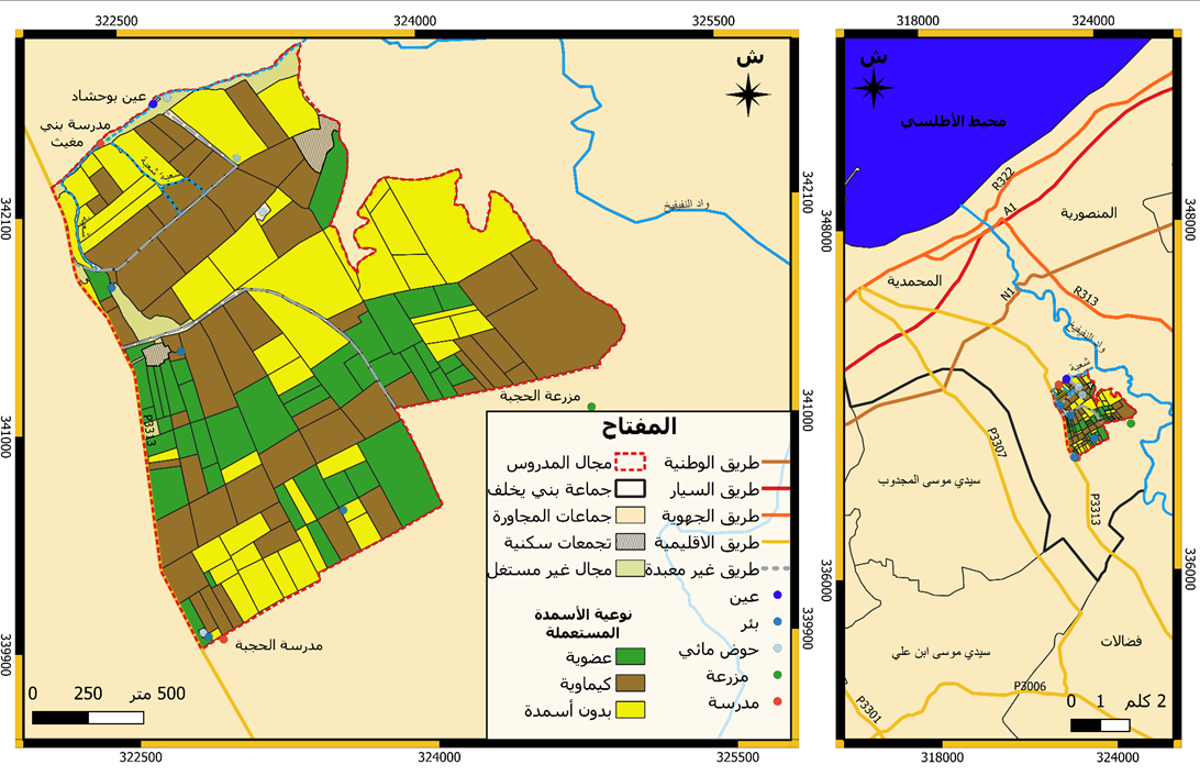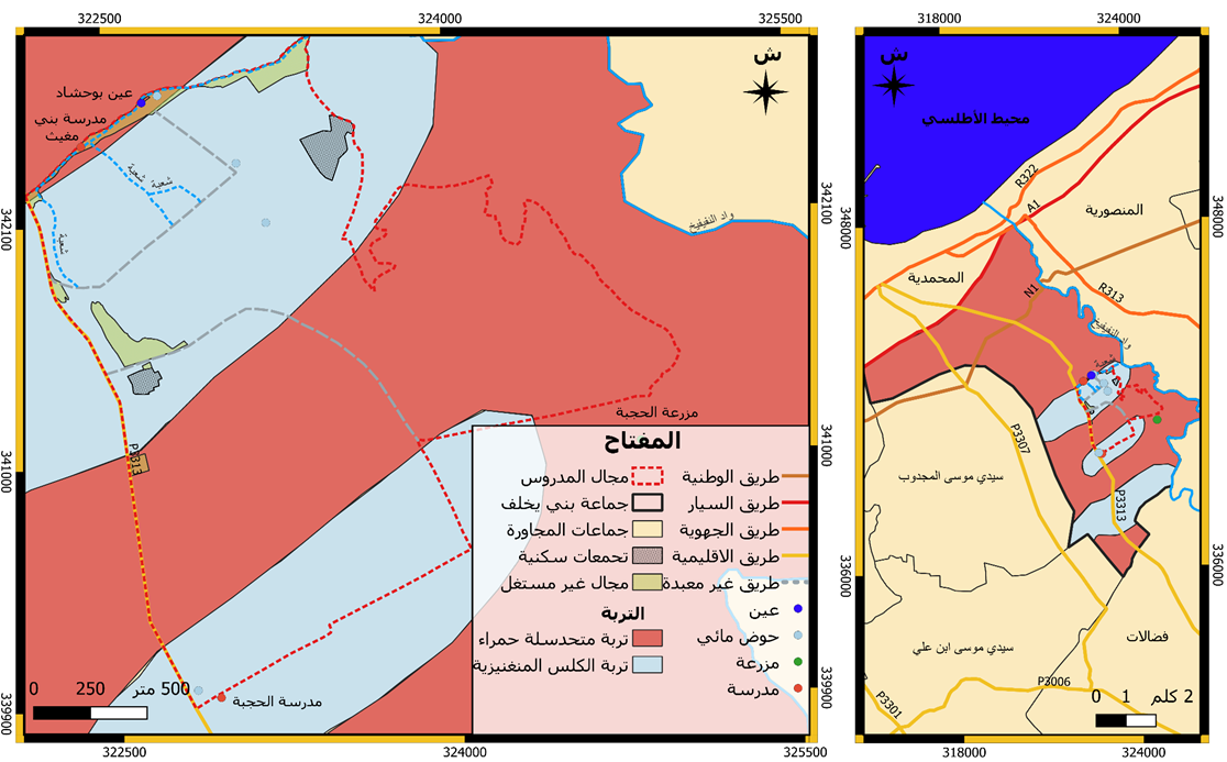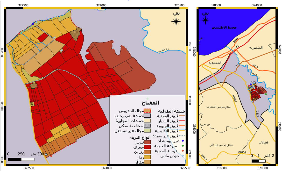 • تربة الحمري: التي تتواجد بكل من الجنوب والوسط تمثل أكبر حصة بمعدل %63 من نسبة الأراضي الزراعية بالمجال المدروس.
