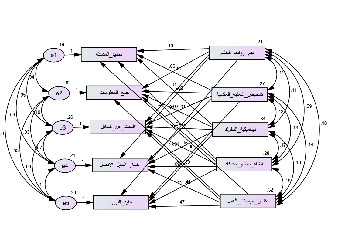Abstract: This study aimed to examine the impact of systems thinking on decision-making in a sample of service sector institutions in the Red Sea State. The research model and hypotheses were developed based on relevant previous literature. The sample was selected using a non-probability (convenience) sampling method, whereby participants were chosen according to their experience related to the subject of the study. A total of 250 questionnaires were distributed, of which 216 were returned, representing a response rate of 86.4%. The study adopted a descriptive–analytical approach, and the data were analyzed using the statistical software AMOS v23 and SPSS, in addition to employing Structural Equation Modeling (SEM) and Path Analysis techniques. The results revealed a weak positive effect of systems thinking on decision-making. Based on these findings, the study recommended the need to study and better understand systems thinking, keep pace with technological developments in hardware and software, and involve all stakeholders in the decision-making process in order to benefit from their expertise.