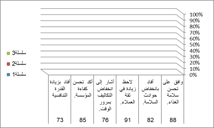 - أظهرت الدراسة ارتباط إيجابي قوي بين تطبيق نظام تحليل المخاطر ونقاط التحكم الحرجة (HACCP) / معيار ISO 22000 وتحسين مراقبة نقاط التحكم الحرجة (CCPs).
